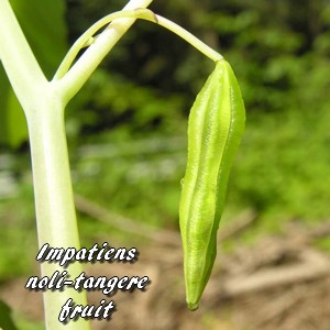 capsules loculicides oblongues qui, à maturité, explosent littéralement dès qu'elles sont touchées, projetant les graines alentour.
