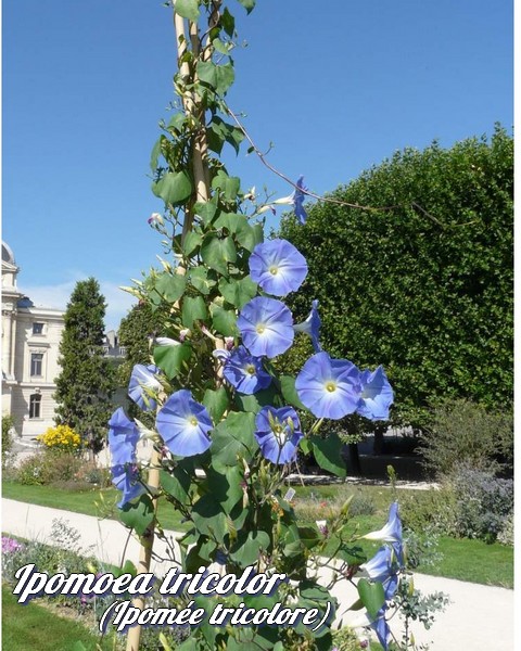 L'Ipomée tricolore est une plante grimpante volubile annuelle atteignant une hauteur de 4 à 5 mètres à la fin de la saison.