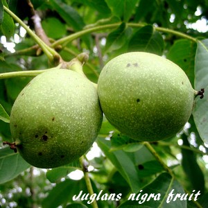 Ses fruits à pédoncule court et épais sont des drupes vertes et ovoïdes mesurant 4 à 5 centimètres. L'épicarpe en est est charnu, lisse, vert puis noirâtre, et se détache à maturité pour laisser apparaître l'endocarpe (coque dure, ligneuse et rugueuse) à 2 valves contenant une graine comestible (la noix) formée de 2 cotylédons (les cerneaux) de couleur blanc crème.