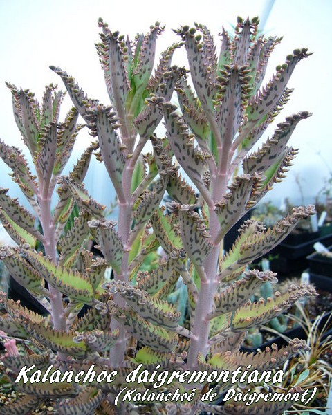 Kalanchoe daigremontiana (Kalanchoé de Daigremont) est une espèce végétale appartenant à la famille des Crassulacées (