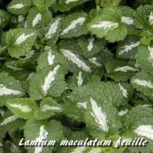 - Lamium maculatum Album (feuillage vert bleuté avec une ligne centrale blanche)