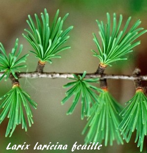 Ses aiguilles plates sont vertes, insérées en rosettes sur les rameaux. A l'automne, elles jaunissent et tombent.