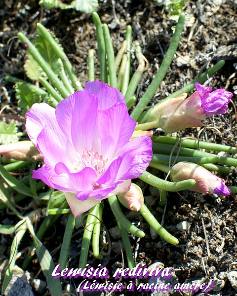 Lewisia rediviva (Léwisie à racine amère) est une espèce végétale originaire de l'ouest de l'Amérique du nord, Etats-Unis et Canada. C'est la fleur symbole de l'état du Montana.