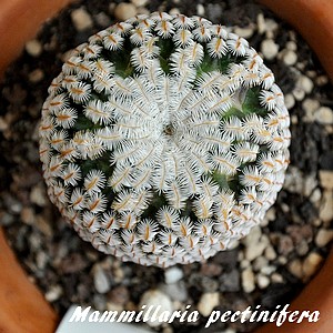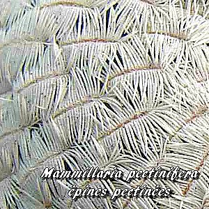 - Mammillaria pectinifera sous-espèce pectinifera (aréoles longues et étroites portant une quarantaine d'épines radiales pectinées et plaquées)