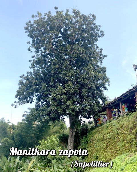 Le Sapotillier est un arbre fruitier à feuillage persistant d'une vingtaine de mètres à 25 mètres et plus (jusqu'à plus de 40 mètres).