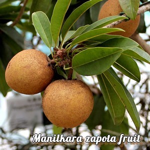 alimentaires: ses fruits, les sapotilles bien mûres pour la consommation (fraîches, en sorbets ou glaces, confitures, crème anglaise, tartes, gelées, etc); son latex en gommes à macher, ses jeunes feuilles crues ou cuites (uniquement les jeunes, les anciennes sont toxiques),