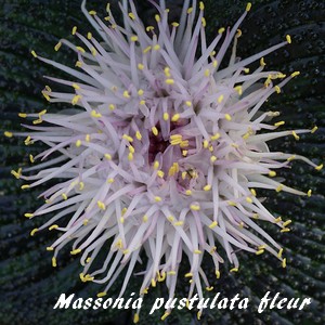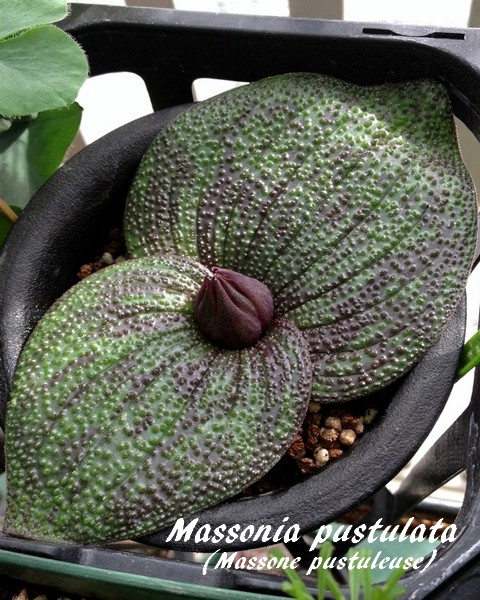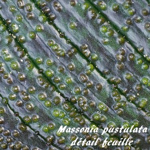 La Massonia pustulata (Massone pustuleuse) est une espèce végétale appartenant à la famille des Asparagacées (sous-famille des Scilloïdées, tribu des Hyacinthées, sous-tribu des Massoniinées) originaire de la province du Cap et du Nomaqualand en Afrique du Sud.