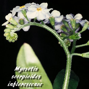 Myostis palustris, son nom spécifique actuel fait allusion à ses inflorescences qui se déroulent comme la queue d'un scorpion, ce qui lui vaut le nom populaire de "Myosote Queue de scorpion".