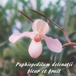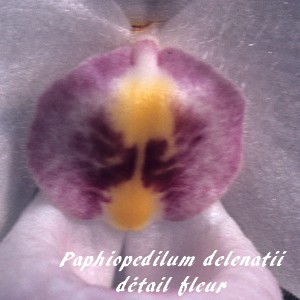 Le Paphiopedilum de Delenat est une plante hermaphrodite qui fleurit en décembre dans son habitat, de janvier à mars en appartement dans l'hémisphère nord, de juillet à septembre dans l'hémisphère sud.