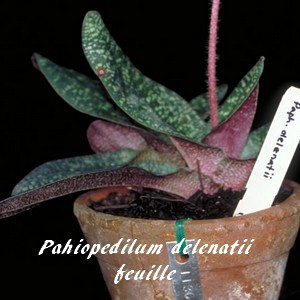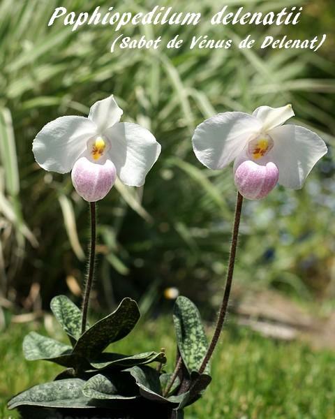 Le Paphiopedilum delenatii (Paphiopedilum de Delenat) est une espèce végétale appartenant à la famille des Orchidacées (sous-famille des Cypripédioïdées) originaire du sud du Vietnam où il pousse entre 800 et 1.300 mètres d'altitude.