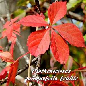 Ampelopsis appelées également "vignes vierges". Son origine géographique lui vaut son nom "Virginia creeper" (Grimpante de Virginie). Cest l'espèce appelée auparavant