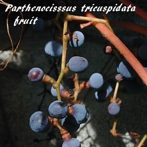 pruineux, bleu foncé à maturité, sont groupés en grappes. Ils persistent une grande partie de l'hiver sur la plante défoliée, au grand bonheur des oiseaux qui les consomment alors qu'ils sont toxiques pour les mammifères.