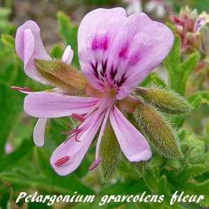 Son nom spécifique vient du latin "graveolens" signifiant "qui a une odeur forte". Il rappelle que ce pélargonium, et plus particulièrement ses