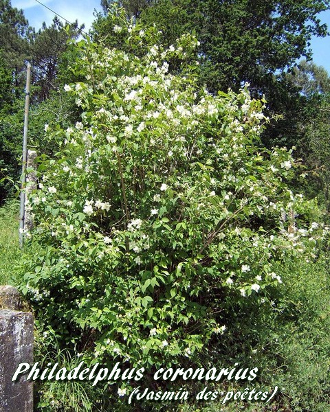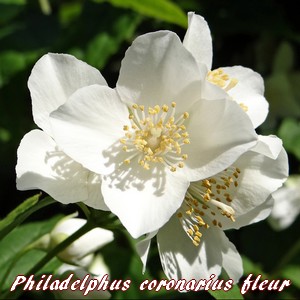Philadelphus coronarius (Jasmin des poètes) est une espèce végétale appartenant à la famille des Hydrangéacées (