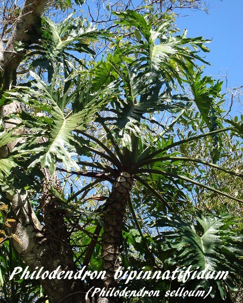 Du fait de la lenteur de sa croissance, elle forme une tige ligneuse (tronc) assez courte avec des racines aériennes plongeant dans le sol. C'est d'ailleurs le cas d'autres aracées comme les anthuriums. On a tendance à penser que le Philodendron bipinnatifidum est un arbuste, toutefois, si un arbre se trouve à proximité, il grimpera à des dizaines de mètres de hauteur.
