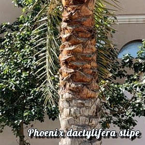 stipe droit solitaire atteignant une hauteur de 30 mètres et plus. Elle émet à sa base des racines et des rejets.