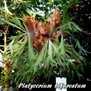 Platycerium bifurcatum (Corne d'élan, Corne de cerf) est une espèce végétale appartenant à la famille des Polypodiacées (