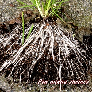 Le Pâturin annuel est donc une plante annuelle basse qui végète en permanence du printemps à l'automne et qui se renouvelle costamment du fait de sa floraison non-stop et de son réensemencement incessant.