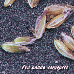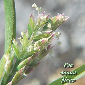 Le Pâturin annuel fleurit à n'importe quel moment de l'année, sauf lors des grands froids, ce qui lui permet de fructifier également toute l'année et de se réensemencer sans discontinuer.