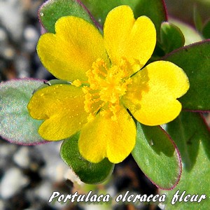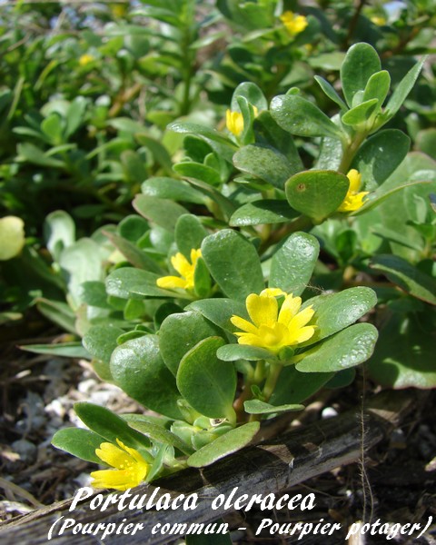 Portulaca oleracea (Pourpier commun, Pourpier potager) est une espèce végétale appartenant à la famille des Portulacacées probablement originaire d'Asie et notamment d'Inde.