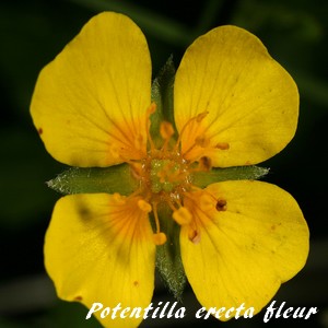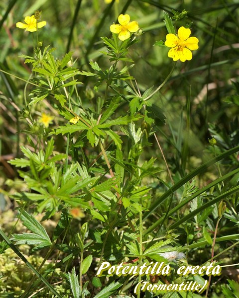 La Potentilla erecta ou Potentilla tormentosa ou Potentilla tormentilla (Potentille dressée ou Tormentille) est une espèce végétale appartenant à la famille des Rosacées (sous-famille des Rosoïdées, tribu des Potentillées, sous-tribu des Potentillinées) que l'on rencontre dans les marécages et les prairies humides, sur des terres acides, à une altitude variant de 0 à 2200 mètres.