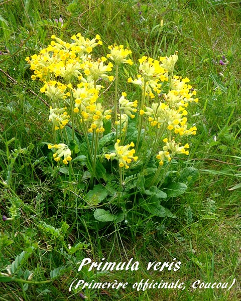 Littéralement "Primevère printanière", on l'appelle communément "Coucou" car elle fleurit au temps où chante cet oiseau. "Primevère officinale" vient de ses multiples propriétés médicinales.