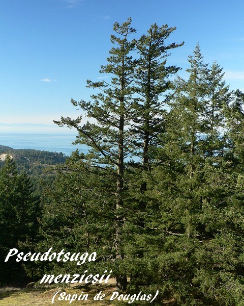 Le Pseudotsuga menziesii (Sapin de Douglas, Pin d'Orégon) est une espèce végétale appartenant à la famille des Pinacées originaire des Etats-Unis (Californie) jusqu'au Canada (Colombie Britannique) sur la cote pacifique de l'Amérique du nord.