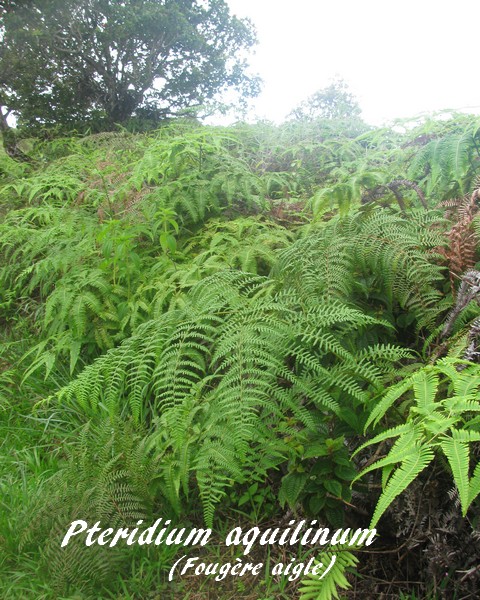Pteridium aquilinum (Fougère aigle) est une espèce végétale appartenant à la famille des Dennstaedtiacées que l'on rencontre jusqu'à 2000 mètres d'altitude sur la quasi totalité du globe (avec toutefois des variétés adaptées à chaque climat).