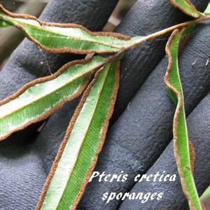 sporanges disposés en ligne sous et le long des marges des pinnules (sur les sujets fertiles) forment des