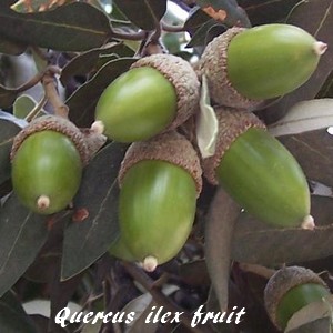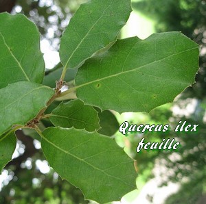 Le Quercus ilex (Chêne vert, Yeuse, Chêne faux houx) est l'espèce emblématique du midi méditerranéen français (espèce dominante de la garigue).