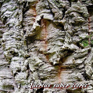 L'écorce du Chêne liège est grise en surface, crevassée, brune à l'intérieur, et peut atteindre 25 centimètres d'épaisseur. On la prélève sur l'arbre lorsque son épaisseur atteint 3 centimètres. Cette écorce ne brûle pas, ce qui protège l'arbre de l'incendie.