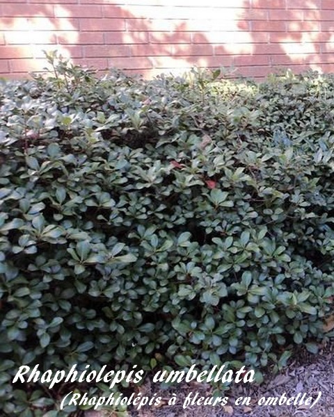 Le Rhaphiolepis umbellata est le plus rustique du genre (-10°C). On ne peut toutefois le consacrer qu'au midi et à la côte ouest de la France.
