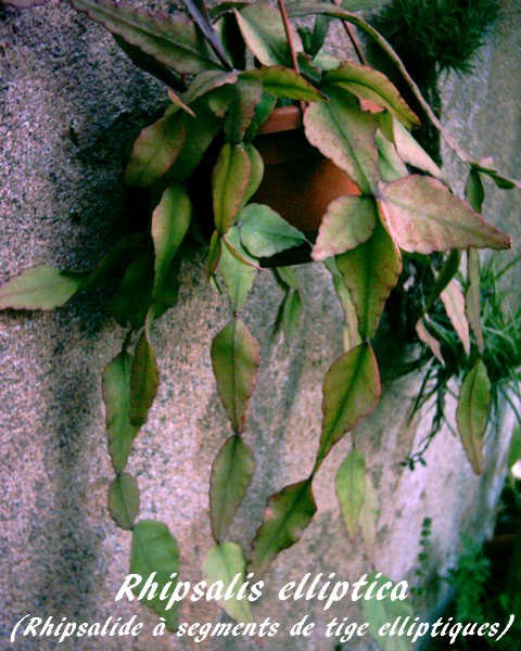Rhipsalis elliptica (Rhipsalide à segments de tige elliptiques) est une espèce végétale appartenant à la famille des Cactacées (