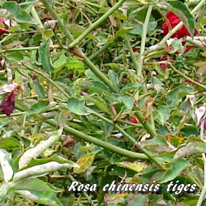 --- Rosa chinensis 'Spontanea', parent de Rosa x odorata, donc de toutes les roses "hybrides de thé" modernes; --- Rosa chinensis 'Semperflorens', rosier du Bengale remontant à fleurs doubles, mutation de Rosa chinensis 'Spontanea'; --- Rosa 'Minima' et 'Pumila', à l'origine des rosiers nains à petites fleurs groupées; --- Rosa chinensis 'Mutabilis', à floraison remontante simple jaune virant au rouge en fanant; --- Rosa chinensis 'Viridiflora', à floraison double verte remontante ...