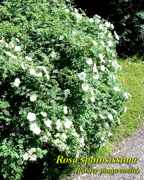 Rosa pimpinellifolia. Aujourd'hui, c'est l'inverse qui a cours, toutefois l'habitude fait que la désignation française "Rosier pimprenelle" est restée d'actualité, bien que la traduction littérale devrait être "Rosier très épineux". Quelques différences morphologiques mineures invoquées à l'époque se retrouvent dans les formes et variétés de cette espèce.