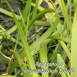 Le Rubanier à feuilles étroites est une plante herbacée vivace aquatique à feuillage flottant semi-persistant à caduc atteignant une longueur de 2 mètres.