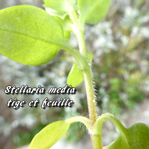 medium" (milieu), ferait allusion à la ligne de poils courant au milieu sur la tige, alternativement d'un côté puis de l'autre à chaque noeud. Son nom vernaculaire "Mouron des oiseaux" vient du fait que ses graines sont fort appréciées par ces derniers. Son autre nom populaire "Morgeline" vient de "mors" (morsure) et "geline" (poule), ces gallinacées étant très friandes de cette plante. Quant à "Stellaire intermédiaire", qui se veut une traduction littérale de la dénomination latine, je ne vois pas bien son emploi.