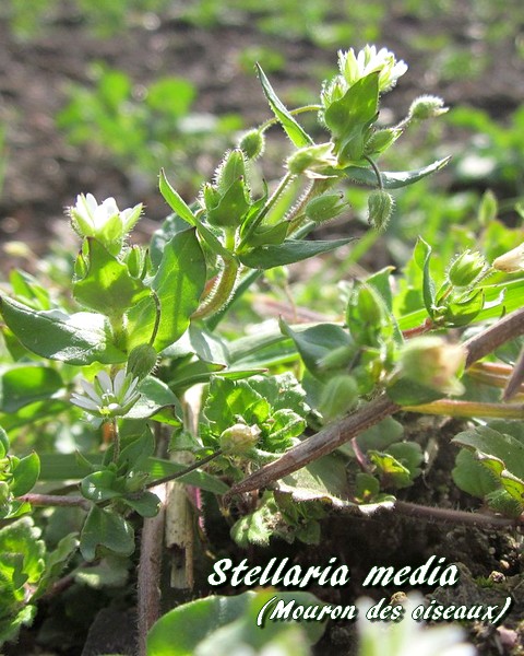 Stellaria media (Mouron des oiseaux ou Mouron blanc) est une espèce végétale appartenant à la famille des Caryophyllacées (