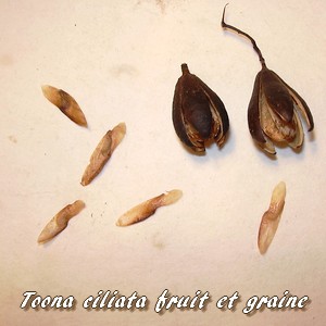 capsules ovoïdes pendantes brun rougeâtre contenant de nombreuses graines ailées inégalement aux 2 extrémités.