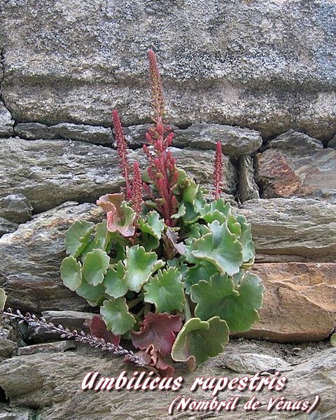 rupicole lui vaut son nom spécifique (qui pousse sur les rochers) ainsi que son nom vernaculaire "Ombilic des rochers".