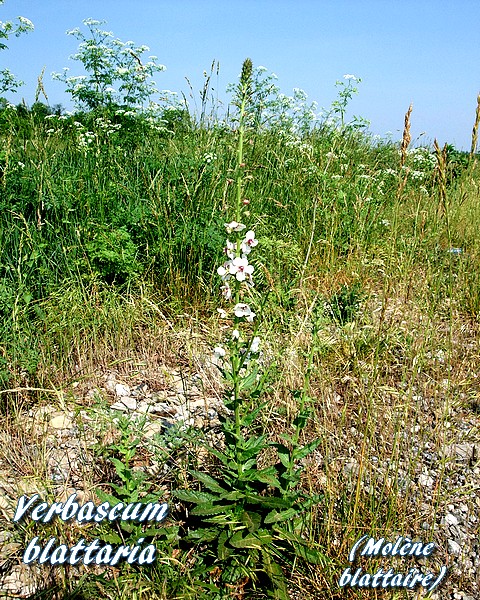 Pline l'Ancien, le fait de répandre cette plante sur le sol éloignait les mites et les cafards, d'où son nom de "blattaria" à Rome). Elle est aussi nommée "Molène papillon" (traduction de l'anglais "Moth Verbascum"). Nous savons par ailleurs que la chenille de la "Cucullie des scrofulaires", un papillon de nuit, se nourrit de notre Molène.