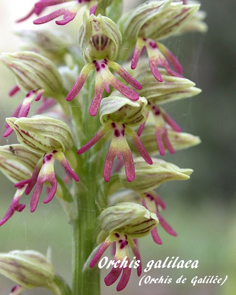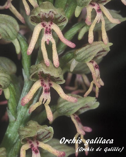 Un autre orchis aux fleurs de forme humaine, l'Orchis galilaea ...