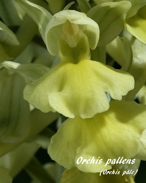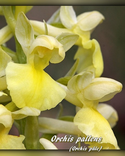 Et enfin, un orchis mi-guerrier, mi-ange (casqué et 2 tépales ouverts), différent en couleur (jaune pâle), l'Orchis pallens: