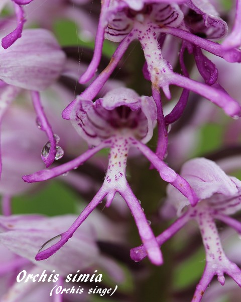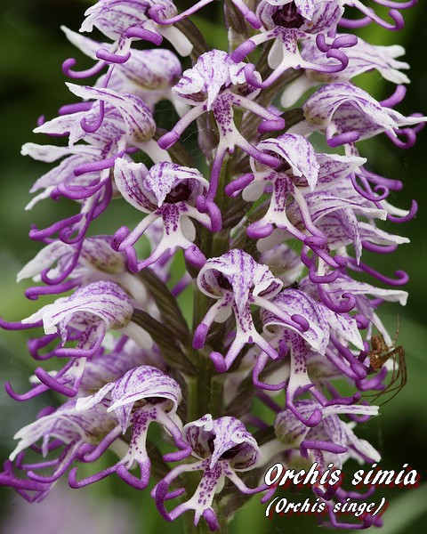 Lorsque les bras sont plus longs, comme ceux des singes, l'Orchis simia par exemple.