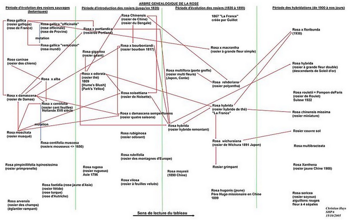 Nous avons vu plus haut que l'origine du rosier, d'après les récentes études biologiques et génétiques, est supposée se situer,