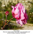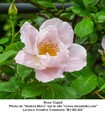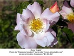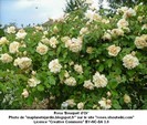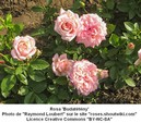 Ce rosier buisson peu épineux haut de 1,80 mètre et à floraison non remontante est une obtention de Paul Barden (USA)