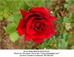 en 1988. Ses fleurs doubles de couleur rouge foncé chaud sont intensément parfumées.