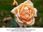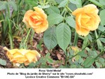 Ce rosier buisson peu épineux haut de 0,90 mètre à 1,10 mètre et à floraison remontante est une obtention de Marie-Louise Meilland (France)