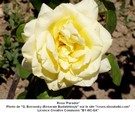 Ce rosier buisson probablement épineux haut de 1,40 mètre et à floraison remontante est une obtention de Marguerite H. Parkes (Australie)
