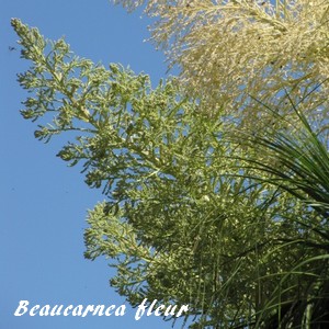 Les beaucarnéas sont à priori des plantes dioïques qui fleurissent vers le mois de juillet au coeur de l'été (je dis "à priori" car les sites que j'ai visités sont très discrets à ce propos, certainement pour les mêmes raisons que les miennes).